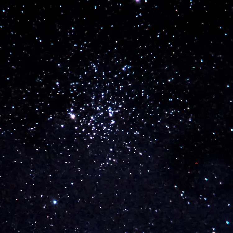 およそ500個の星々からなる星団です。地球からは、M45プレアデス星団よりも10倍以上離れたところにあります。この星団も何かの形に見えそうですね。私は、口を開けた亡霊のように見えます٩(๑º﹏º๑)۶ Afraid~