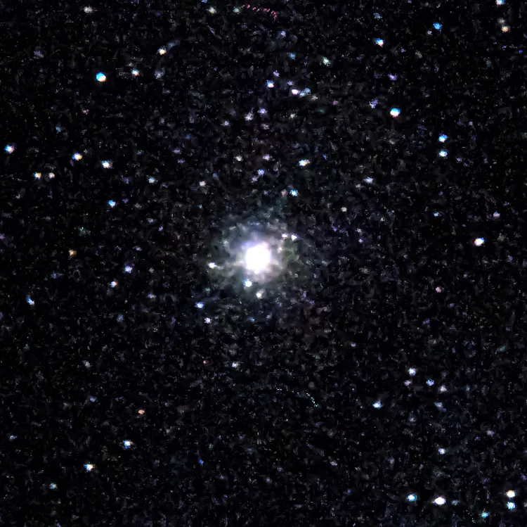 小さい!それもそのはず、遠くにあるから。いて座矮小楕円銀河に属する球状星団です。銀河以外のメシエ天体では唯一、天の川銀河の外にあるそうです (๑' '๑)و