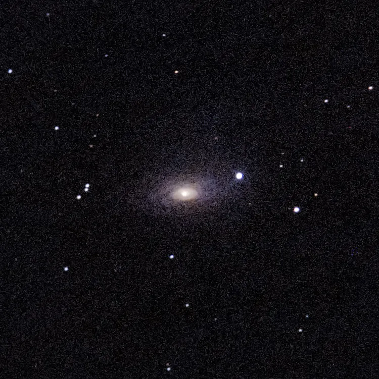 M51やM101と同じ、M51銀河群所属!愛称はひまわり銀河。銀河の形がひまわりの花に似ているからですね。渦巻き部分の模様が辛うじて見えますか? ちなみに英語でも Sunflower Galaxy と呼ばれます。大きさは私たちのいる天の川銀河とほぼ同じ、直径10万光年と考えられていています。