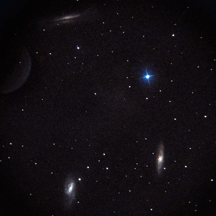 3つの銀河あわせて、しし座の三つ子銀河・Leo TriplettまたはM66銀河群!どれもそれぞれ魅力的な形をしています。これらの銀河は、お互いに重力で影響しあっています。