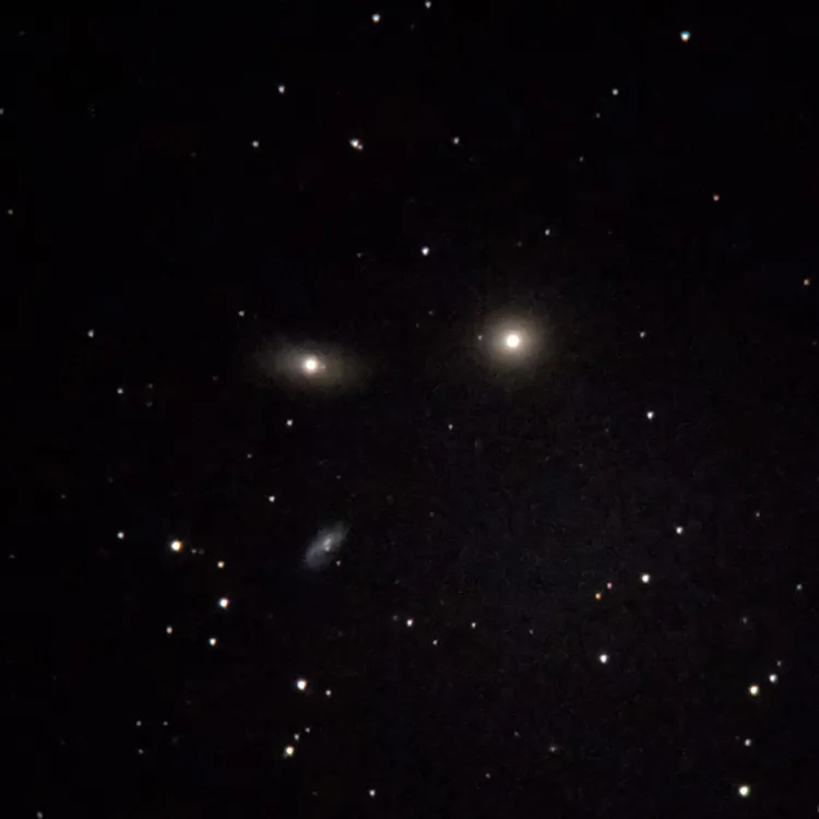 M105を中心として、NGC3384は同じくらいの明るさ、淡いのがNGC3389です。近くのM95・M96としし座銀河群をつくっています。私たちの銀河も外からはどう見えるんでしょう?
